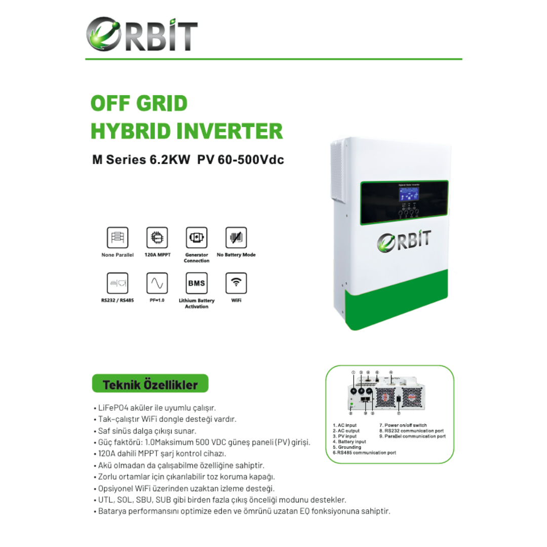 ORBİT 6.2 kW Tam Sinüs Offgrid İnverter – Non Parallel