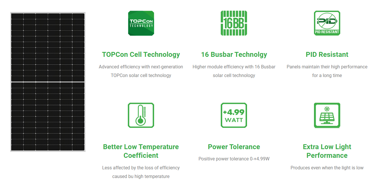✓ TOPCon teknolojisi ile uzun yıllar yüksek verimlilik
